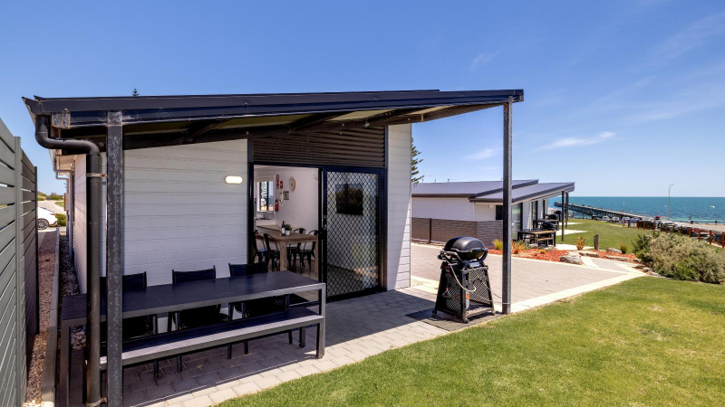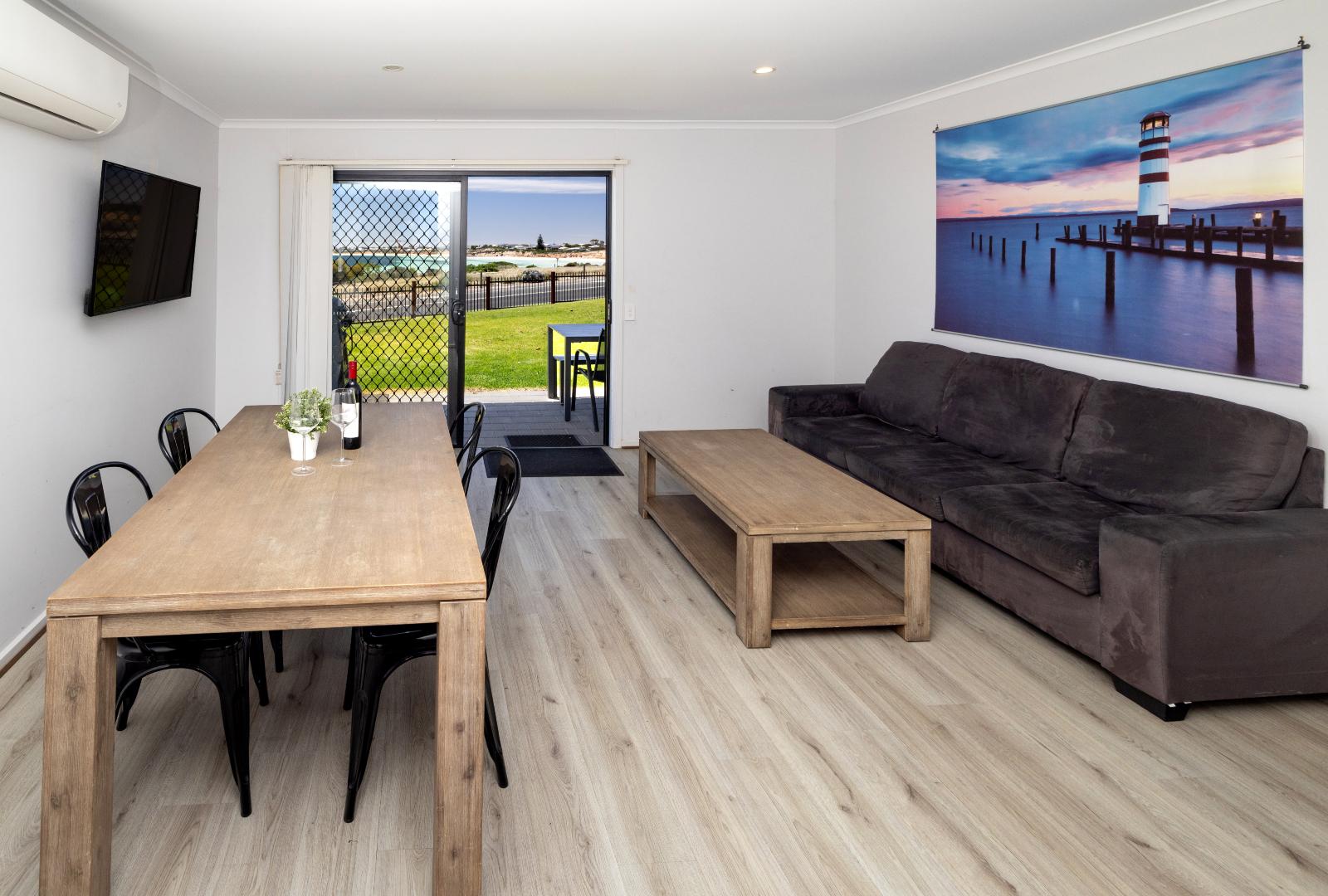 Whether you’re travelling with family or friends, our spacious Beach View Villa is perfect for spending quality time together. The two-bedroom villa is fully self-contained and sleeps up to four people. With a king bed in the main bedroom (which can be split into two single beds) and a queen bed in the second bedroom (which can also be split), there’s plenty of room to accommodate everyone. Take advantage of the open-plan lounge and dining area, and kick up your feet after a long day. The villa is equipped with HD TV, High-Speed Internet, and streaming services, ensuring entertainment and connectivity during your stay. Once you’re ready, you can use the villa’s fully equipped kitchenette to make a delicious meal, or head outside to cook on the Weber BBQ and enjoy your creation while overlooking the coastline.