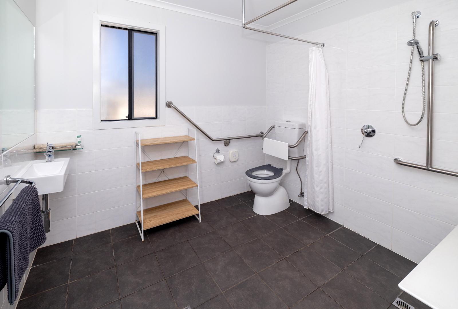 This spacious villa is also perfect for people requiring wheelchair-accessible facilities—it includes wide doorways and a large accessible bathroom with a roll-in shower, stainless steel handrails, and a folding seat in the shower. The villa complies with Australian Standard 1428.1-2009. We have selected dog-friendly cabin options available—please notify us if you are bringing a dog, as additional charges apply.