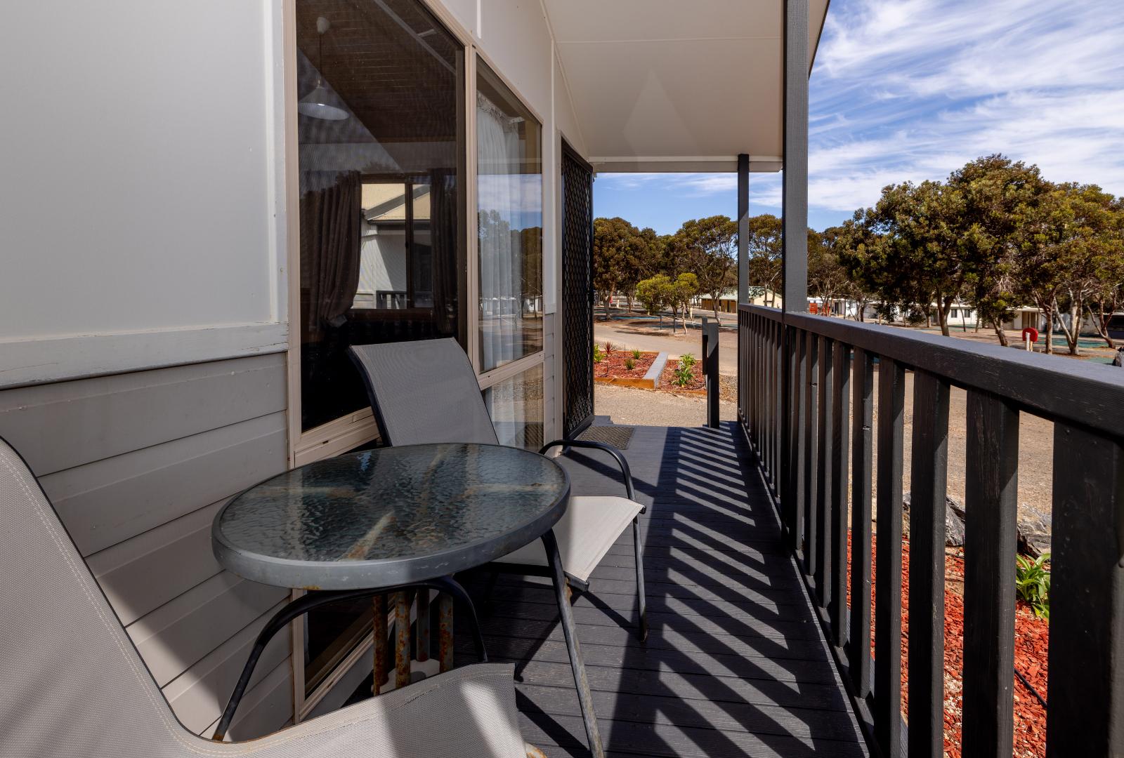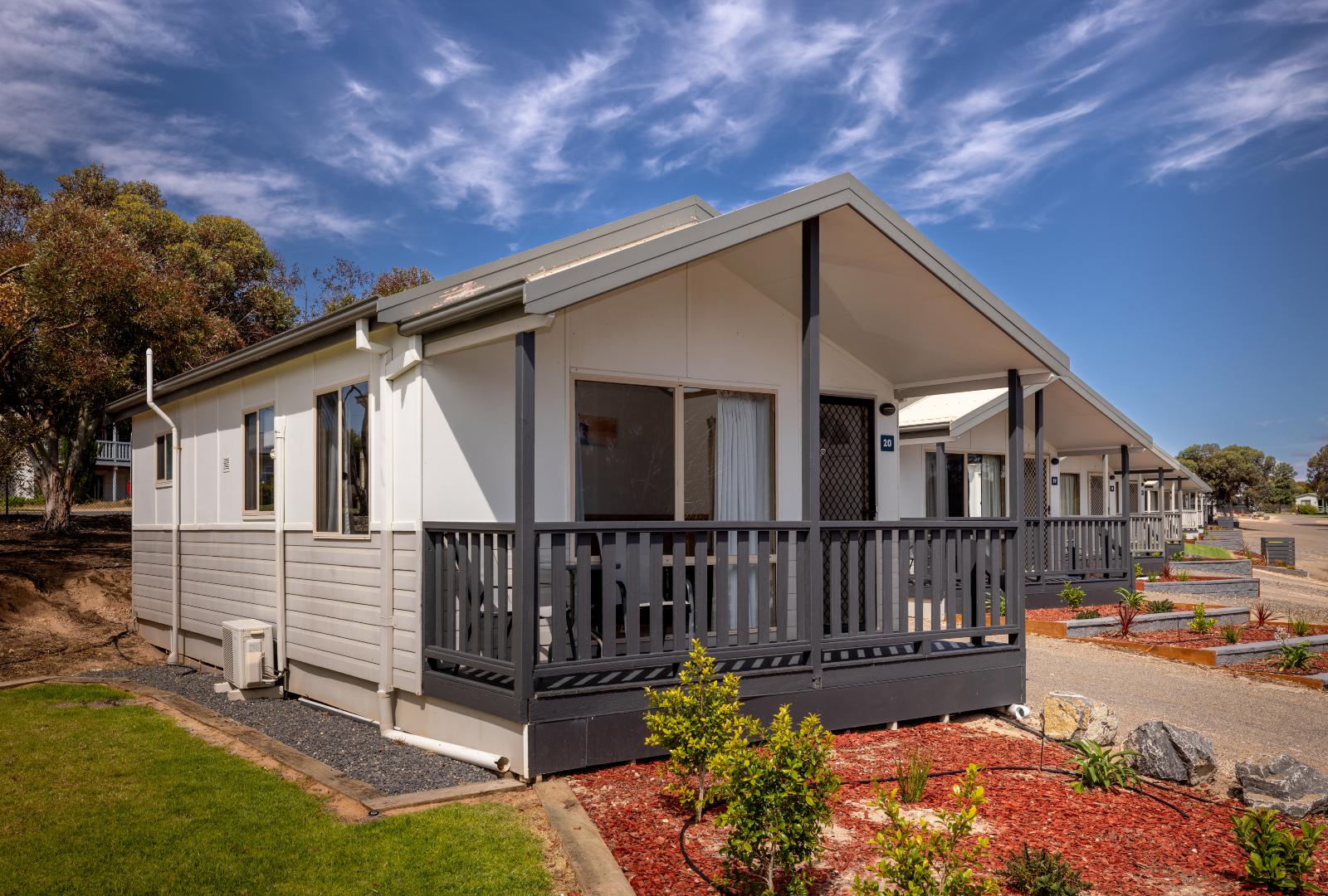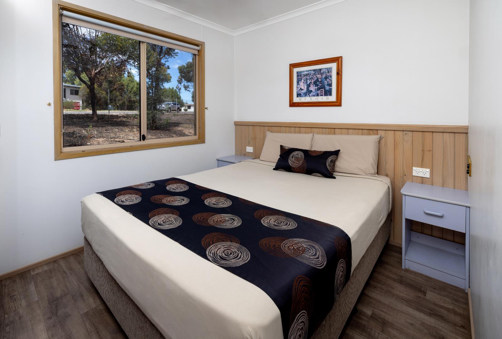 Take a short stroll from your executive cabin and enjoy the refreshing ocean breeze each morning. Sleeping 4 guests, our executive cabins are well-suited for a small family looking to get away for the weekend. With a queen bed in the main bedroom, and 2 single beds in the second bedroom these cabins provide a cozy and comfortable base for your Port Hughes stay. Conveniently located in the main section of the park, these cabins are just a short stroll from the swimming pool, camp kitchen and other great facilities. We have select dog-friendly cabin options available. Please notify us if you are bringing a dog. Additional charges apply. *Please note the surroundings of the villa are not always as pictured.