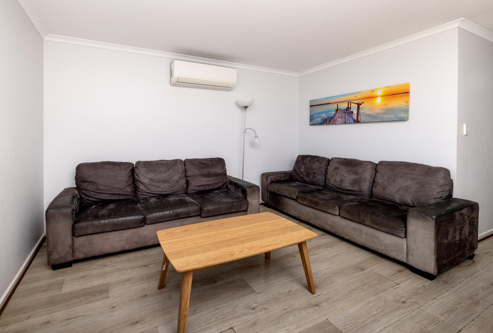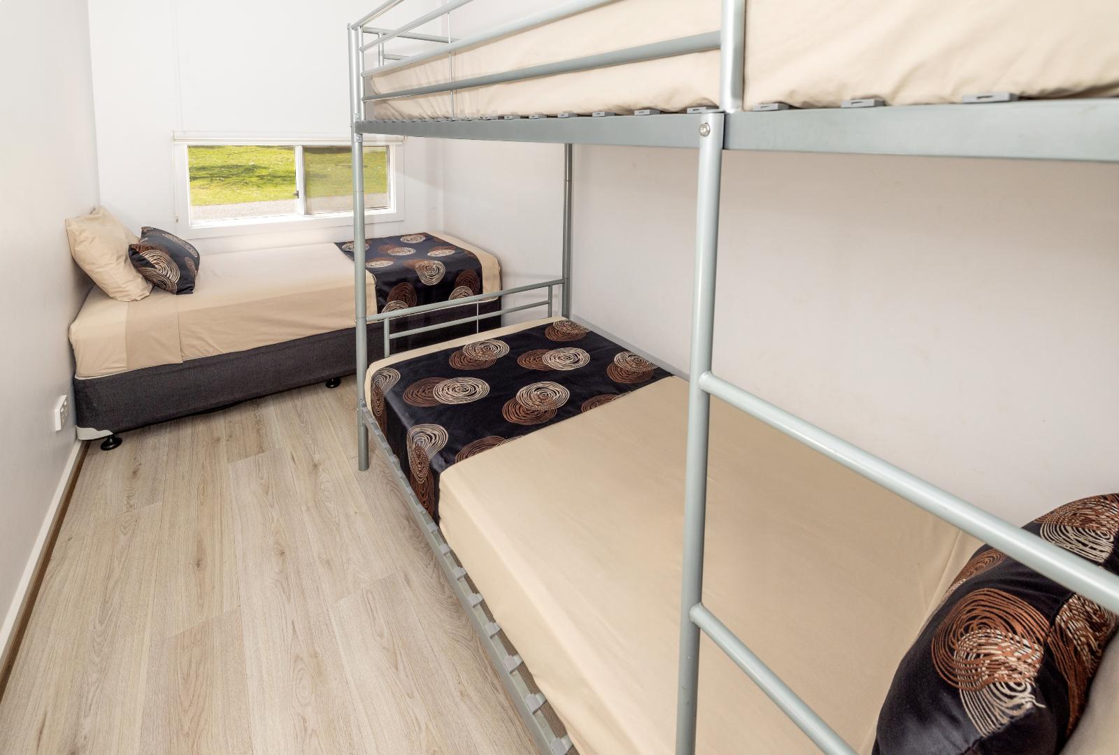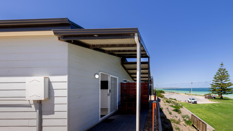 Enjoy stunning views of Port Hughes Beach from the comfort of your unit. Overlooking the Port Hughes Pier, our ocean view units are fantastic for those that love the sound of the ocean and the sea breeze. These spacious units sleep up to 5 people, featuring a queen bed in the main bedroom and 1 single bed and 1 set of bunk beds in the second bedroom, making them ideal for families and groups. With a modern and fully equipped kitchen, you’ll be able to whip up dinner with no hassle at all. There’s plenty of space to enjoy meals together as well, whether it’s inside using the dining room or out on the patio on the outdoor setting. The cabin is equipped with HD TV, High-Speed Internet, and streaming services, ensuring entertainment and connectivity during your stay. We have select dog-friendly cabin options available. Please notify us if you are bringing a dog. Additional charges apply. *Please note the surroundings of the villa are not always as pictured.