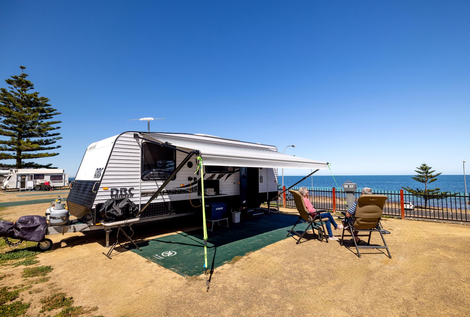 Wake up feeling refreshed each morning – breathe in the salty ocean air and take in the incredible beach views from your foreshore powered site. Situated just a stone’s throw from the ocean, these sites provide the perfect beachside backdrop to your holiday. Located in the foreshore area of our park, they’re only a short walk to the amenities and barbecues, offering both breathtaking views and convenience. Plus, enjoy complimentary high-speed internet during your stay, keeping you connected while you unwind. Bringing your pooch along to enjoy the salty sea air too? Our foreshore sites are all dog-friendly — please notify us if you are bringing a dog.